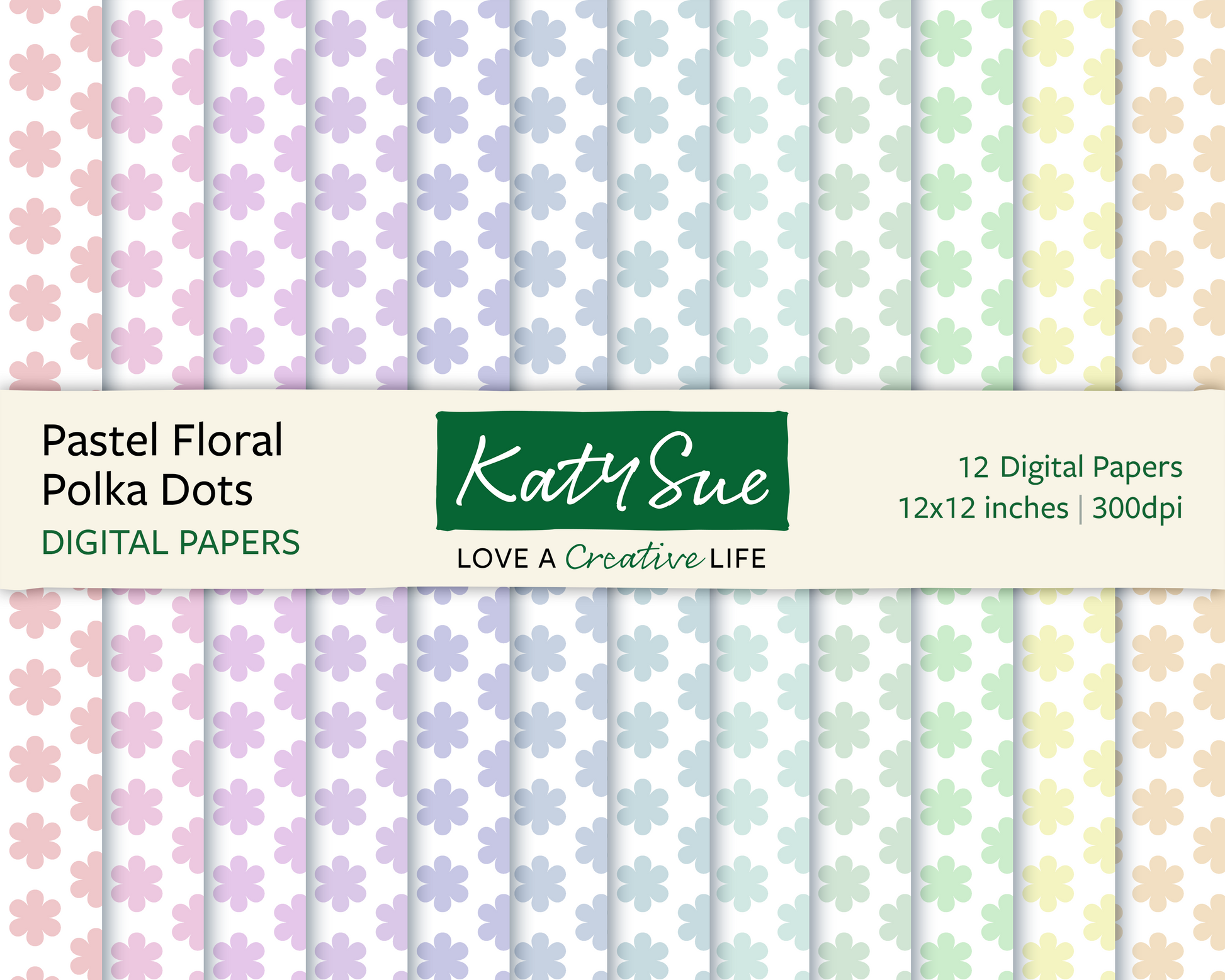 Pastel Floral Polka Dots | 12x12 Digital Papers