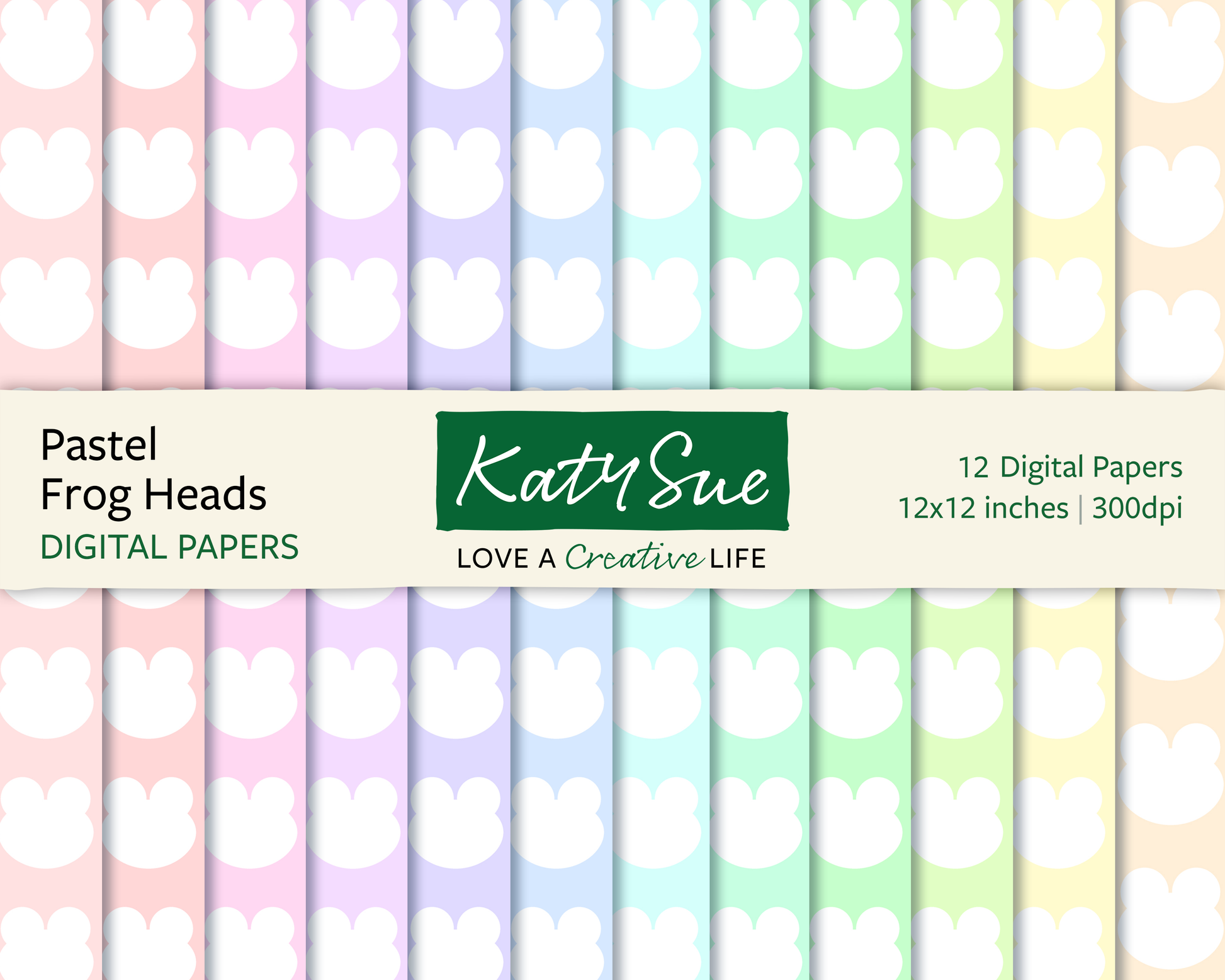 Pastel Frog Heads | 12x12 Digital Papers