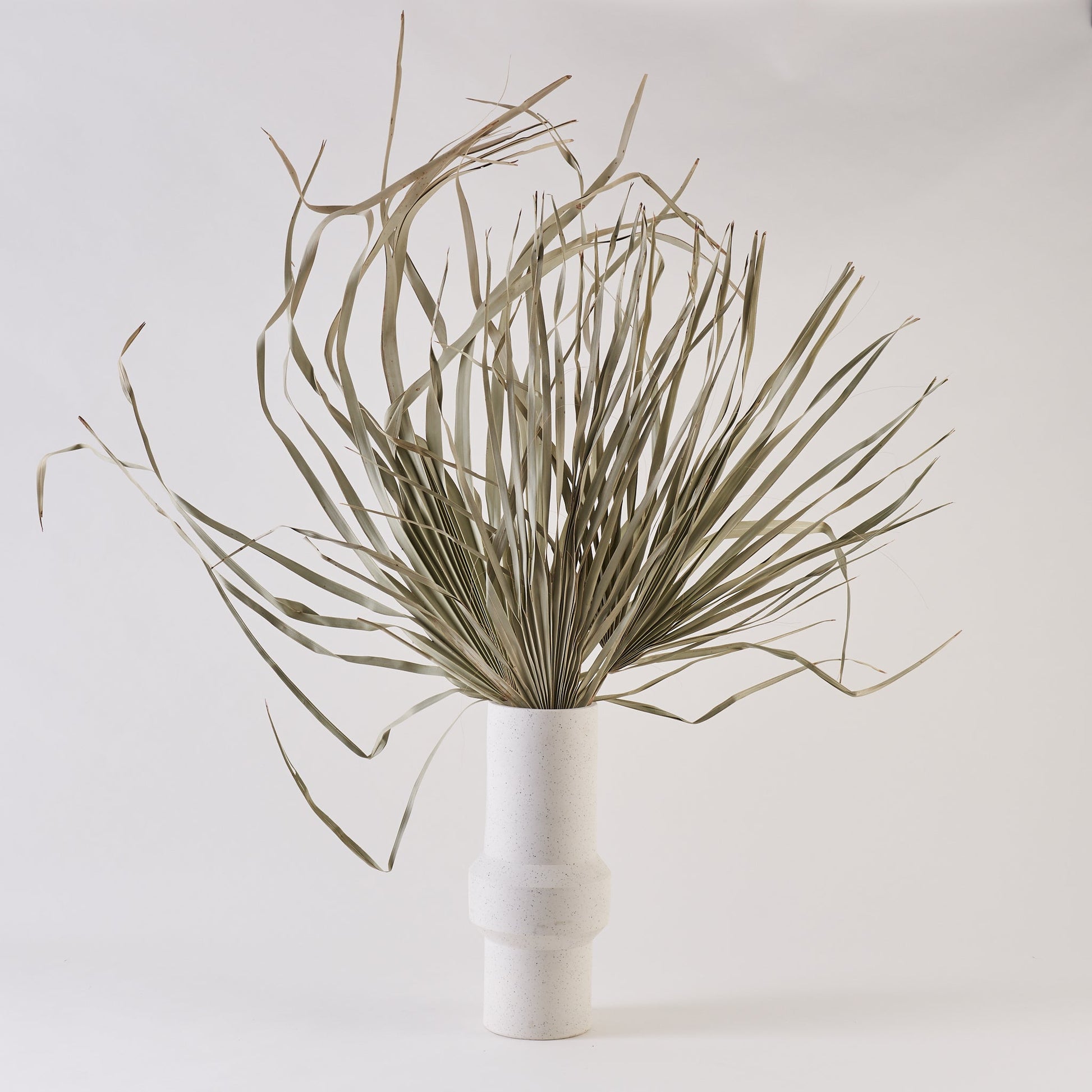 These palms are real dried leaves. Dried and preserved flowers are mostly care free and will last indefinitely. They should be kept in a vase without water. The main factors that effect them are light or humidity. Direct sunlight can cause flowers to fade, and moisture can be absorbed and make certain flowers wilt. If they end up getting dusty, we recommend canned air or a blow dryer on a low cool setting.